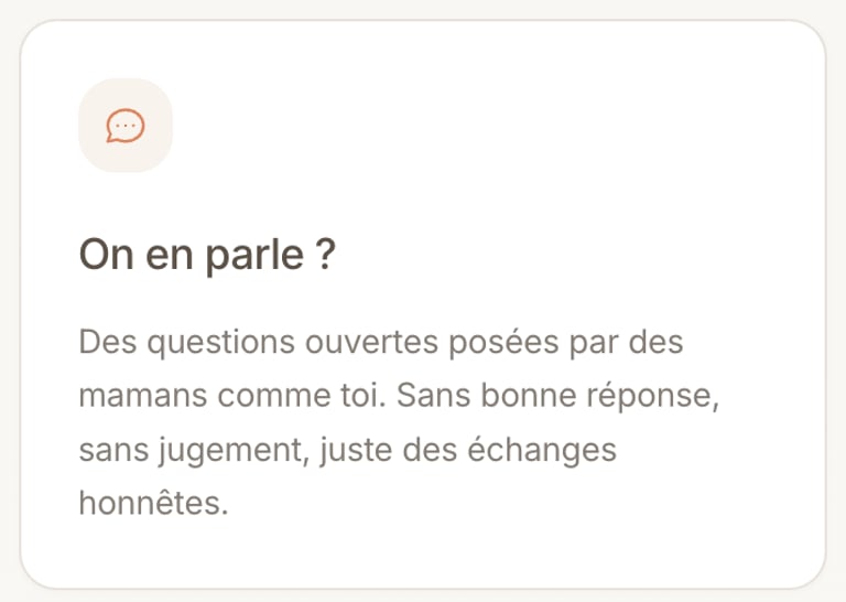 Où tu pourras partager avec d'autres mamans ce que tu vis/traverses (anonymement si tu le souhaites). Tu recevras des réponses authentiques, utiles, modérées, bienveillantes et surtout sans jugement.